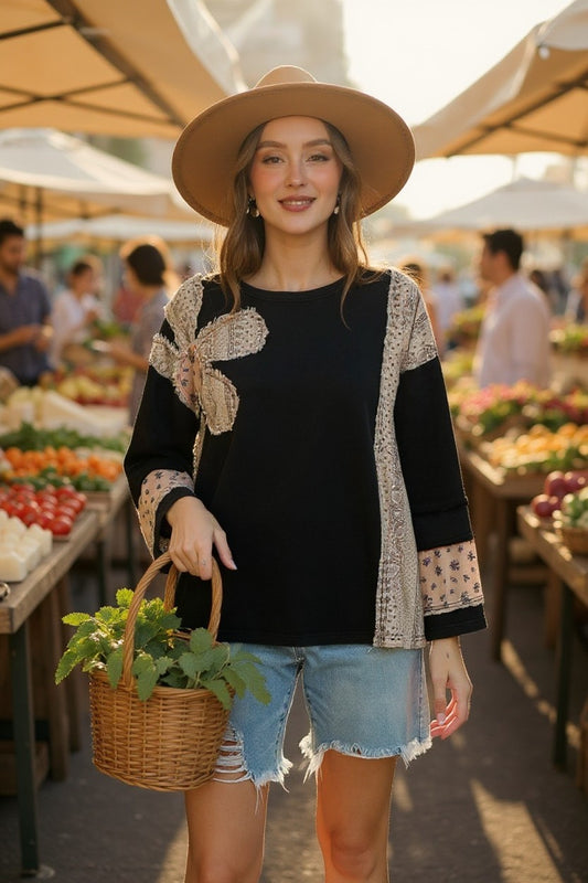 Bohemian Stone Washed Bat Wing Sleeve Top