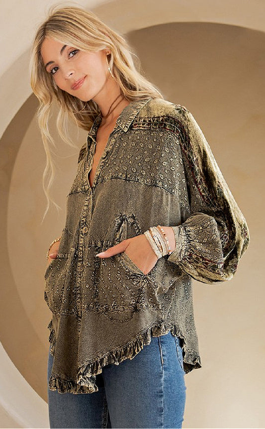 Bohemian Stone Washed Bat Wing Sleeve Top