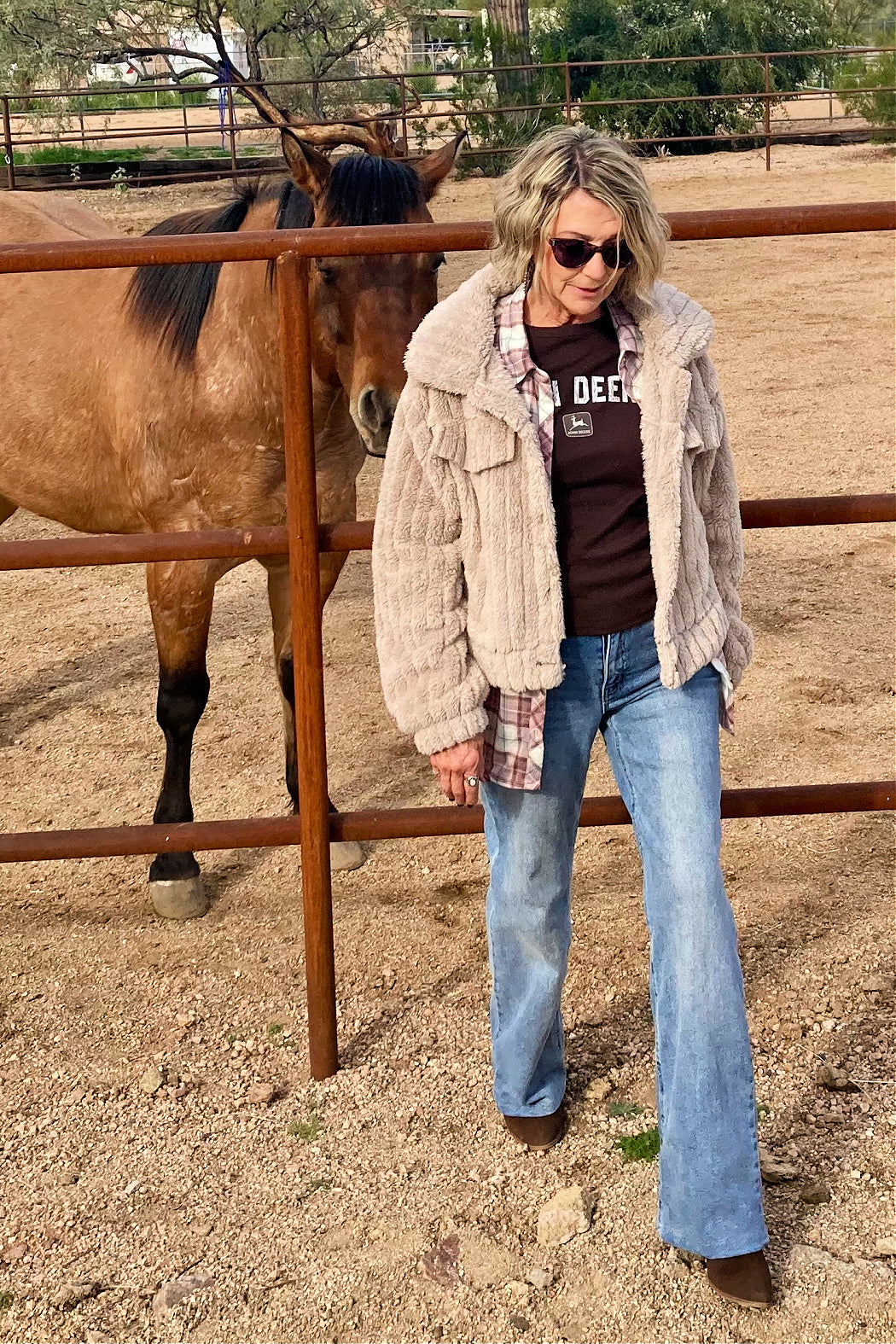 Elevate your everyday look with this ultra-soft, ribbed faux fur jacket designed for effortless layering. Its sophisticated cropped silhouette transitions seamlessly from casual coffee dates to elegant evening vibes. Stay cozy and confident in this must-have neutral essential that pairs perfectly with anything in your closet.