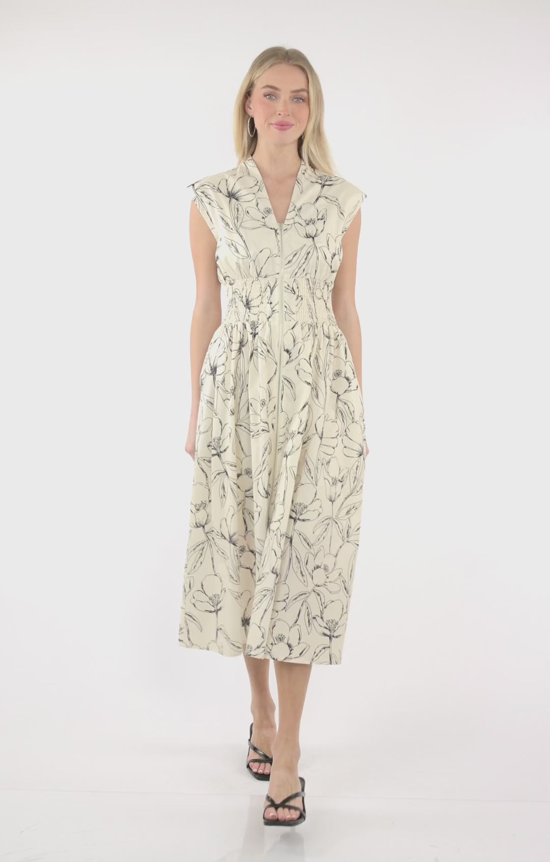 Get ready to turn heads in this absolute showstopper! Our smocked waist midi dress features a gorgeous black and cream print with drop shoulders, functional pockets, and a front zipper for easy on-and-off style. Whether you're hitting a pool party, BBQ, wedding, or night out, this dress does it all—comfortable enough for all-day wear, chic enough to steal the spotlight. Pair it with your favorite accessories and own every moment.